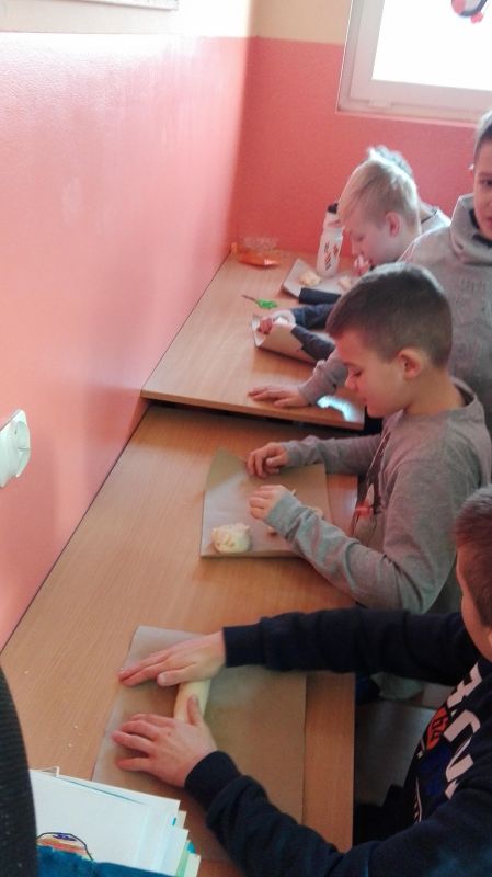 Uczniowie uczęszczający do świetlicy szkolnej świętowali Tłusty czwartek. Klasy pierwsze i drugie podczas zajęć świetlicy tematycznej wykonywali pracę plastyczną pt. "Mój wymarzony pączek". Natomiast starsi uczniowie wykonywali pączki wykonane z gazet, ozdobione farbowanym ryżem. Podczas pracy było dużo śmiechu i radości, a niektórzy chcieli nawet skosztować naszych dietetycznych pączków.