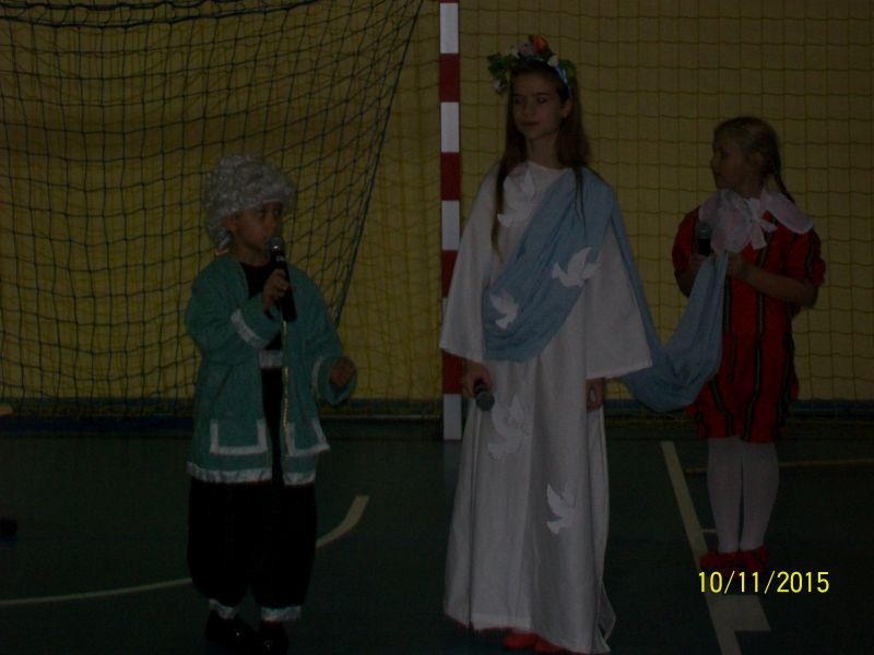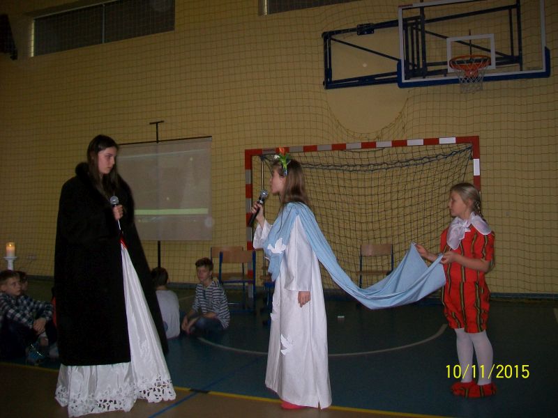 klas zebrały się w sali gimnastycznej, aby wysłuchać legend